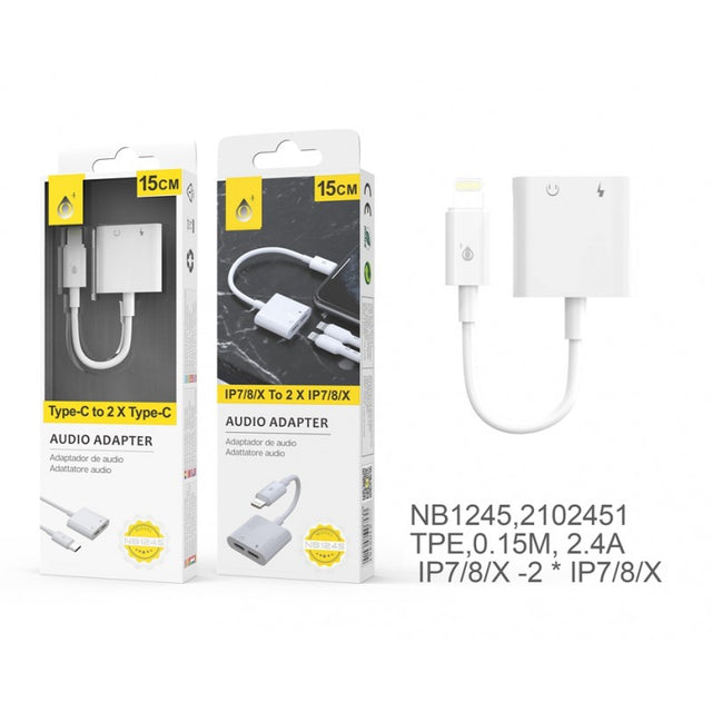 O adaptador NB1245 2 em 1 permite carregar o seu iPhone enquanto utiliza auscultadores com ligação Lightning. Ideal para modelos sem entrada de áudio tradicional, garantindo praticidade no dia a dia.