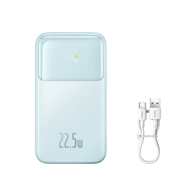 Powerbank Baseus Comet Series com display de 10000mAh 22.5W - azul + cabo USB-A para USB-C 0.3m - branco