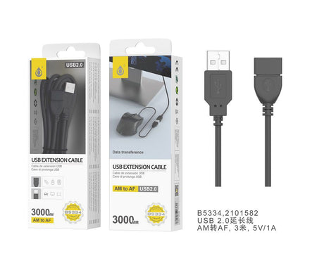 Cabo de Extensão USB 2.0 Macho para Femea 3 Metros Preto