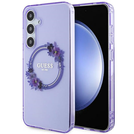 Etui Guess IML Flowers Wreath MagSafe para Samsung Galaxy S24+ - roxo
