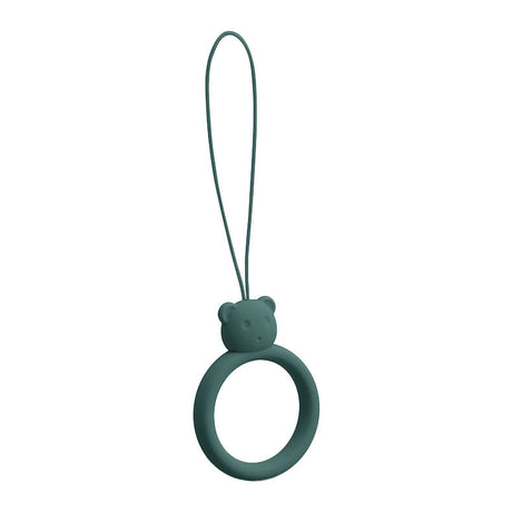 Cordão de silicone para telefone com pingente de ursinho e anel para dedo na cor verde escuro