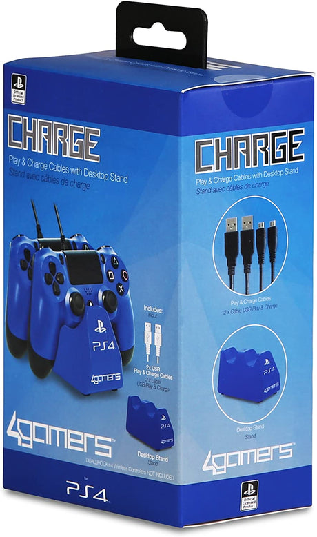 Estação de Carregamento PS4 4GAMERS Twin Play n' Charge Azul