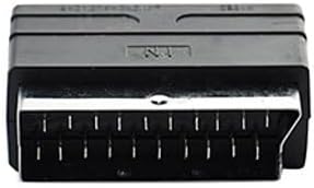 Adaptador SCART macho para 3 RCA fêmea (áudio e vídeo), ideal para ligar equipamentos com saída RCA a televisões ou dispositivos com entrada SCART.