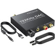 • Conversão Digital para Analógica: converte sinais de áudio digitais através das entradas óptica (Toslink SPDIF) ou coaxial em saídas RCA L/R ou jack 3,5 mm.