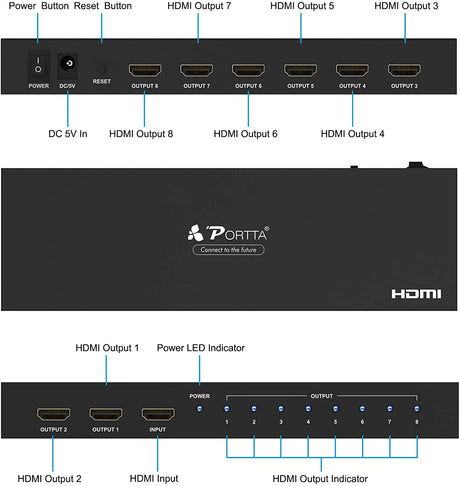 Portta Splitter Multiplicador HDMI 1 x 8 1 Entrada 8 Saídas Full HD 1080p 3D