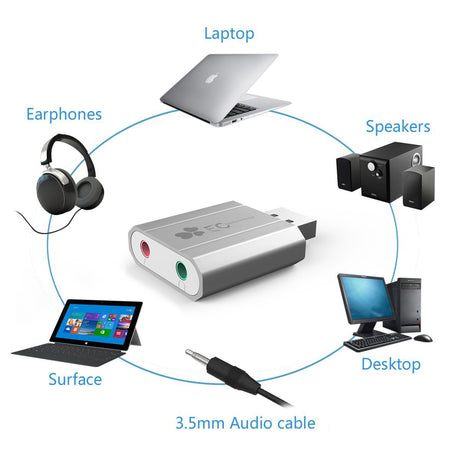 EC Technology Placa de Som Externa USB Adaptador de Som Virtual - Prata