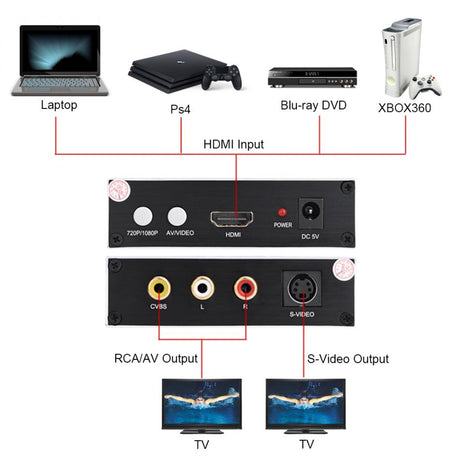 Conversor de Vídeo RCA / S-Vídeo AV para HDMI - Multi4you®