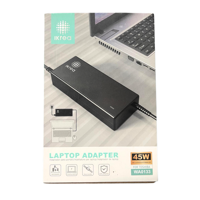 O Adaptador para Portátil IKREA WA0133 é a solução ideal para substituir ou complementar o carregador original dos portáteis Toshiba compatíveis. Com potência de 45W e saída estável de 19V / 2.37A, garante um carregamento seguro, eficiente e fiável para o uso diário.