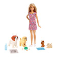 A Barbie adora todos os animais, especialmente os cães e tem agora quatro adoráveis animais de estimação para cuidar! Os dois cães maiores vão certamente mantê-la ocupada: um faz xixi e o outro faz cocó! As crianças que adoram animais vão divertir-se a valer com este conjunto da Barbie e os seus cãezinhos.