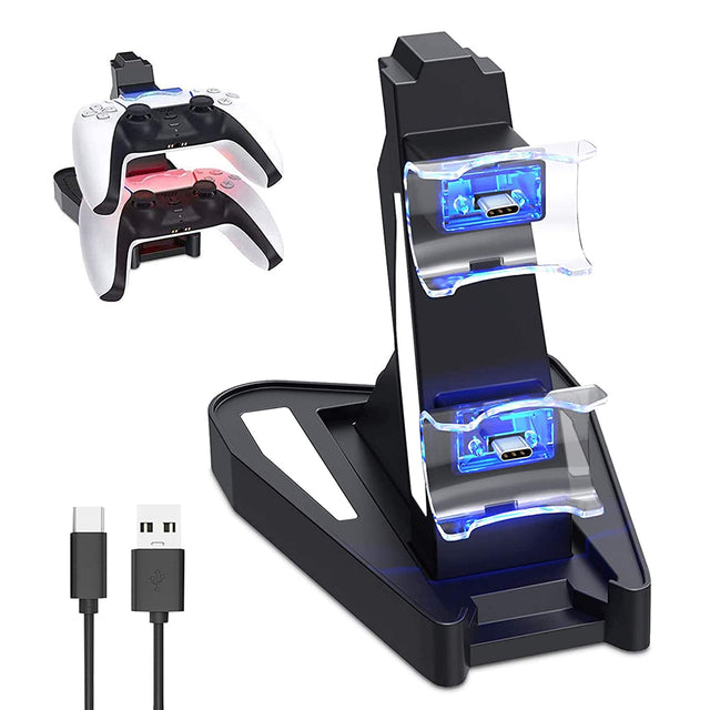 - Carregamento e armazenamento fáceis: A docking station garante que os controladores permaneçam carregados e armazenados com segurança quando não estiverem em uso. Basta conectar a docking station a uma fonte de alimentação (não incluída), como um console, computador, banco de energia ou adaptador USB usando o cabo de carregamento USB incluído.