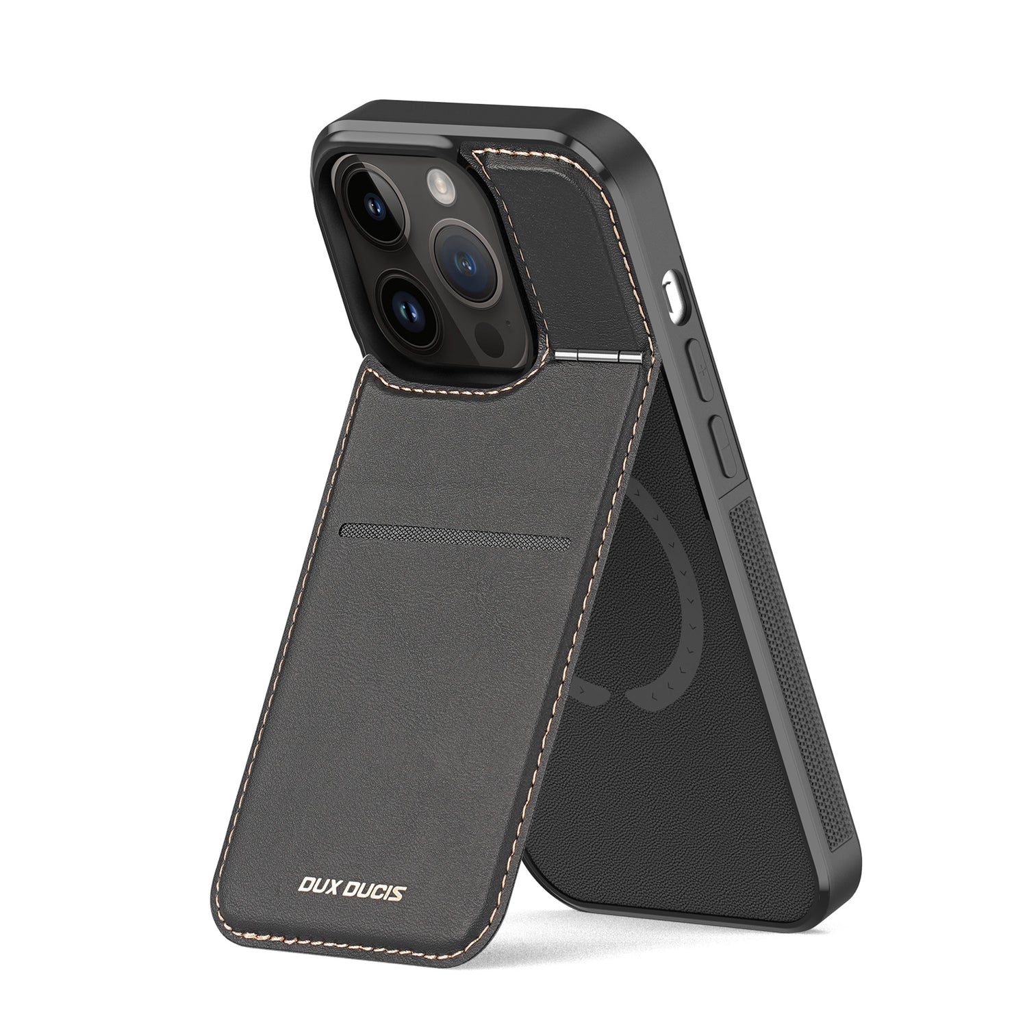 Etui portfel Dux Ducis Rafi Mag com suporte 3 em 1 para iPhone 15 Pro Max com MagSafe e bloqueio RFID - preto