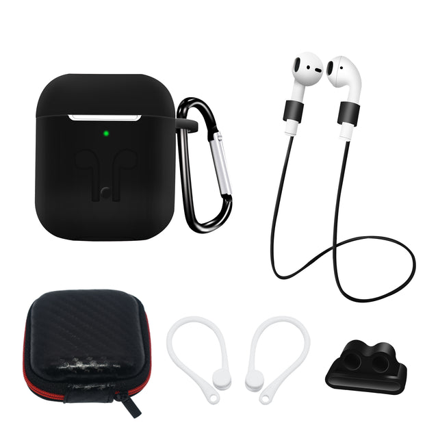 Kit de capa de silicone para AirPods 2 / AirPods 1 + estojo / gancho de orelha / alça de pescoço / suporte para pulseira de relógio / mosquetão - preto