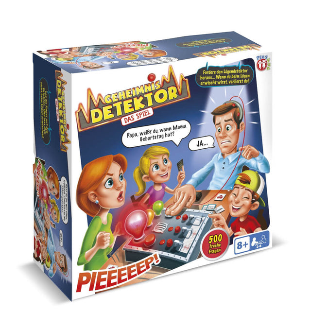 Wahrheit oder Lüge? Beim Geheimnis Detektor muss sich die ganze Familie in Acht nehmen, denn blitzschnell wird auch diesmal jemand beim Schwindeln erwischt! Es wird spannend: Zuerst werden die Finger auf dem Detektor platziert und das Kopfband angelegt. Ein zweiter Spieler stellt nun Fragen, die nur mit Ja und Nein beantwortet werden dürfen. Erkennt die Maschine die Antwort als Lüge, verliert derjenige einen Punkt. Ist die Person laut Geheimnis Detektor nervös, so muss die Frage mit einer Erklärung erneut beantwortet werden. Dann ist der nächste Spieler an der Reihe. Wirst du dreimal beim Lügen erwischt, bist du disqualifiziert. Wer wird der Spieler mit dem besten Pokerface und den stärksten Nerven sein? Ab 8 Jahren.