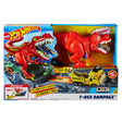 A Cidade Hot Wheels está a ser invadida por um enorme T-Rex e precisamos da tua ajuda! O T-Rex ganha vida com sons e movimentos motorizados, e só tu podes derrubá-lo para salvar o dia! Lança o teu carro contra o dinossauro em rotação para o tentares derrubar antes que ele destrua os edifícios da cidade. Mas tem cuidado! Se não lhe acertares, podes ser engolido por um T-Rex esfomeado! Os efeitos sonoros aumentam a diversão à medida que mexe a cauda, o T-Rex ruge, morde e até arrota!