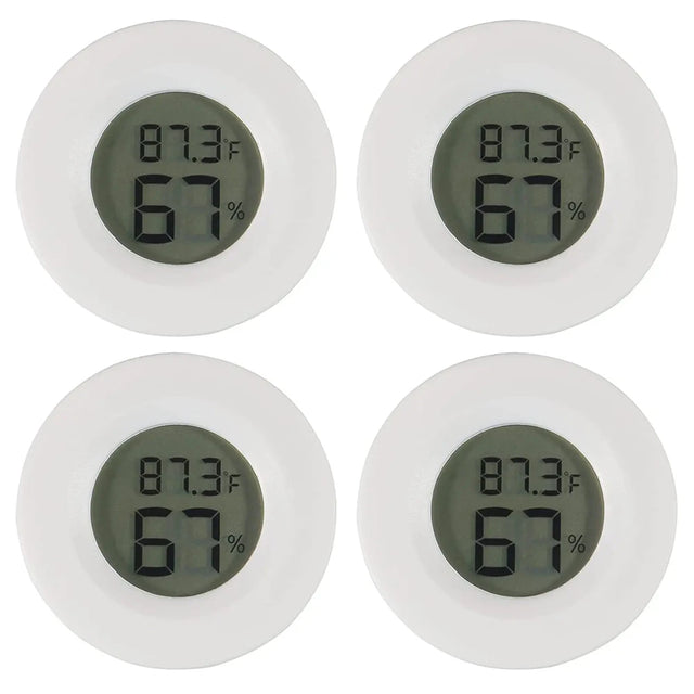 Controle o ambiente da sua casa ou espaço de trabalho com este pack de 4 mini higrómetros e termómetros digitais. Cada unidade possui visor LCD que exibe temperatura e humidade em tempo real, podendo ser configurado em Fahrenheit ou Celsius. Ideal para salas, escritórios, estufas, armazéns, aquários e outros ambientes onde a monitorização climática é importante.