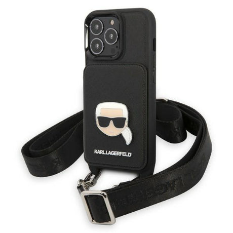 Etui Karl Lagerfeld Saffiano Metal Karl Head para iPhone 13 Pro / iPhone 13 - preto