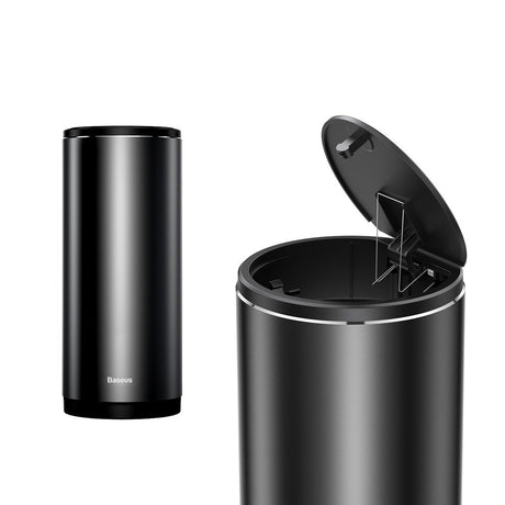 Lixeira mini de carro Baseus com tampa para automóvel preta (CRLJT-01)