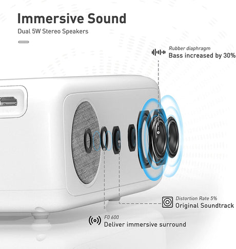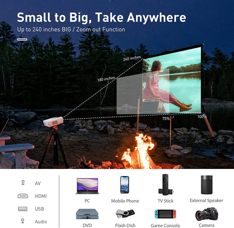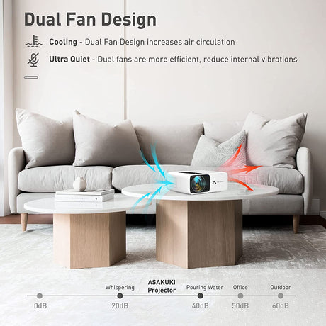 ASAKUKI Projetor 9800L Tela Até 240'' Correção Trapezoidal iPhone/Android/HDMI/USB/AV