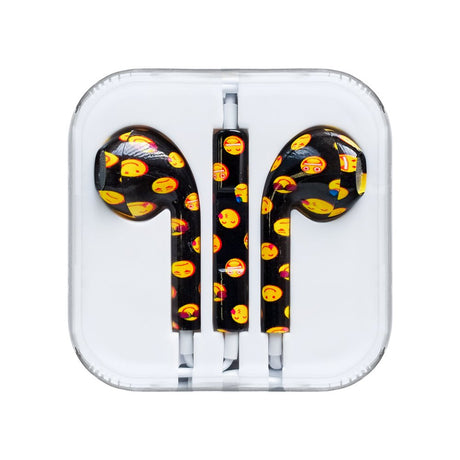 Auriculares com microfone 35 mm mini jack do iPhone iPad iPod emoticons pretos