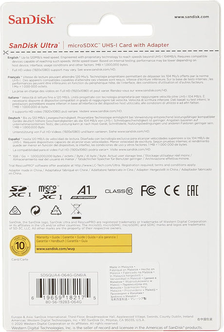 Cartão de memória SanDisk Ultra 64 GB microSDXC + Adaptador