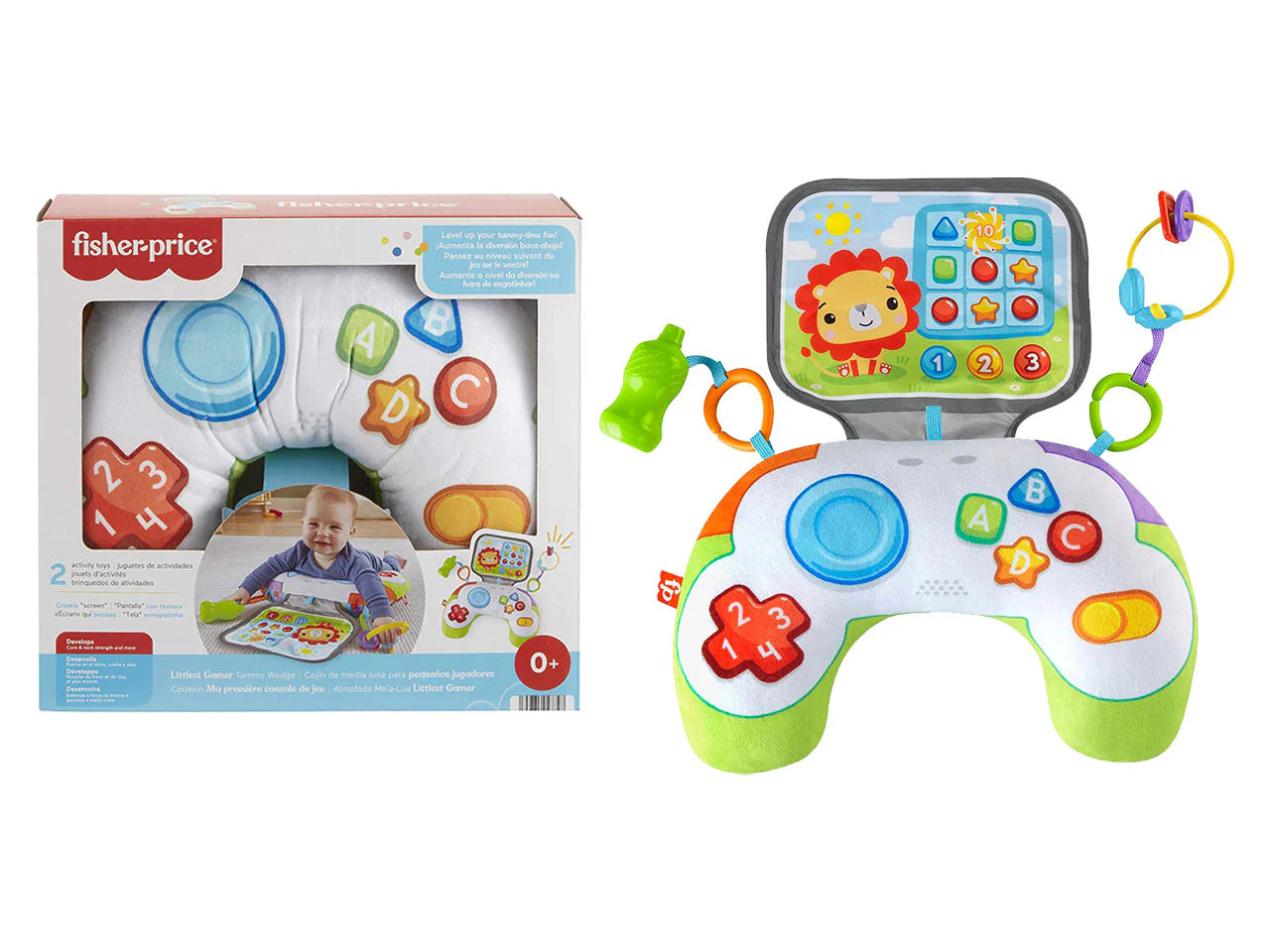 Descobre o Fisher-Price Gamer Tummy Wedge, um apoio didático ideal para bebés desde os 0 meses, projetado para estimular os sentidos e apoiar o desenvolvimento motor desde os primeiros dias.