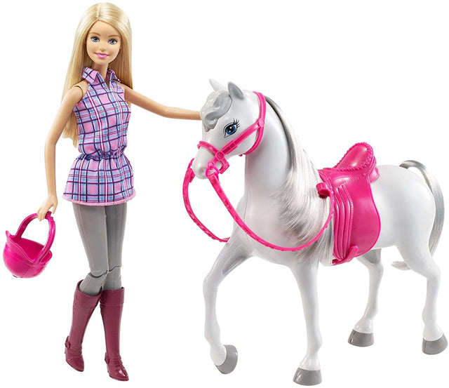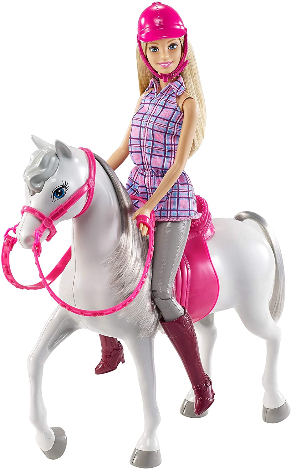 Conte aventuras a cavalo ou representa momentos em que a Barbie cuida da sua amiga.