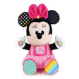 A querida peluche Baby Minnie em tecido macio tornar-se-á a melhor amiga de todas as crianças! Graças aos 3 botões interativos nas mãos e na barriguinha da Baby Minnie, ela cantará rimas divertidas com a voz original da Minnie. As doces canções vão guiar as crianças na aprendizagem das primeiras letras, números e cores com a personagem mais adorada da Disney.