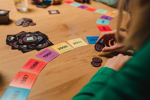 • O objetivo é ouvir, adivinhar o ano e organizar corretamente as faixas ao longo da linha temporal.