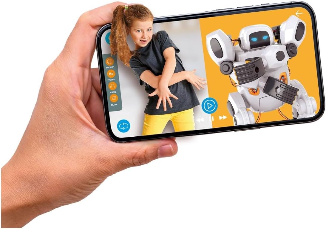 m robô inovador equipado com inteligência artificial que lhe permite reconhecer gestos e comandos de voz. Personaliza o teu robô treinando-o para reconhecer todos os gestos que desejares e divirte-te com ele através de muitas atividades interessantes. Produto inovador enriquecido com funções de inteligência artificial. Os 6 motores permitem-lhe efetuar qualquer tipo de movimento para um produto super tecnológico e inovador. Função de ligação Bluetooth para interagir com a APP e jogar com todos os modos.