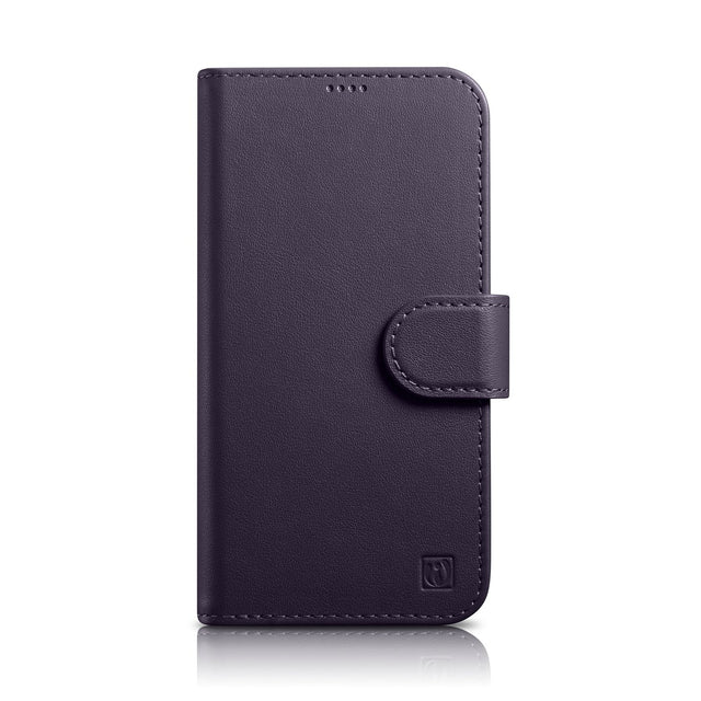 Capa Carteira iCarer 2 em 1 para iPhone 14 Plus, capa de couro com aba Anti-RFID na cor roxa escura (WMI14220727-DP)