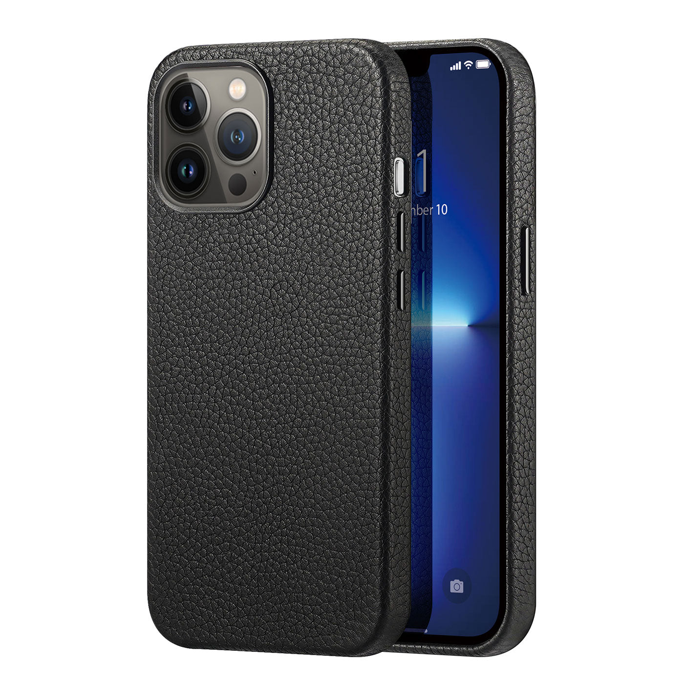 Capa de couro elegante Dux Ducis Roma para iPhone 13 Pro Max em couro natural preto