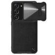 Capa de Couro Nillkin CamShield S para Samsung Galaxy S23 com proteção para câmera na cor preta