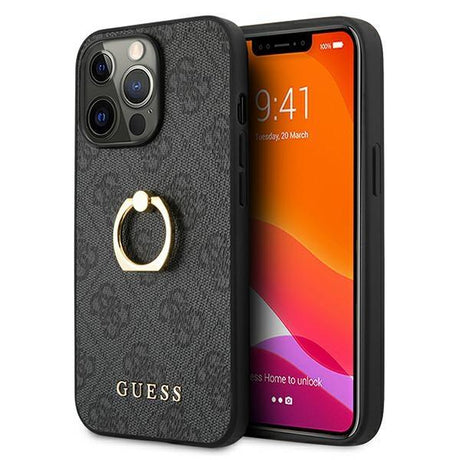 Capa Guess 4G com Suporte de Anel para iPhone 13 Pro / iPhone 13 - cinza