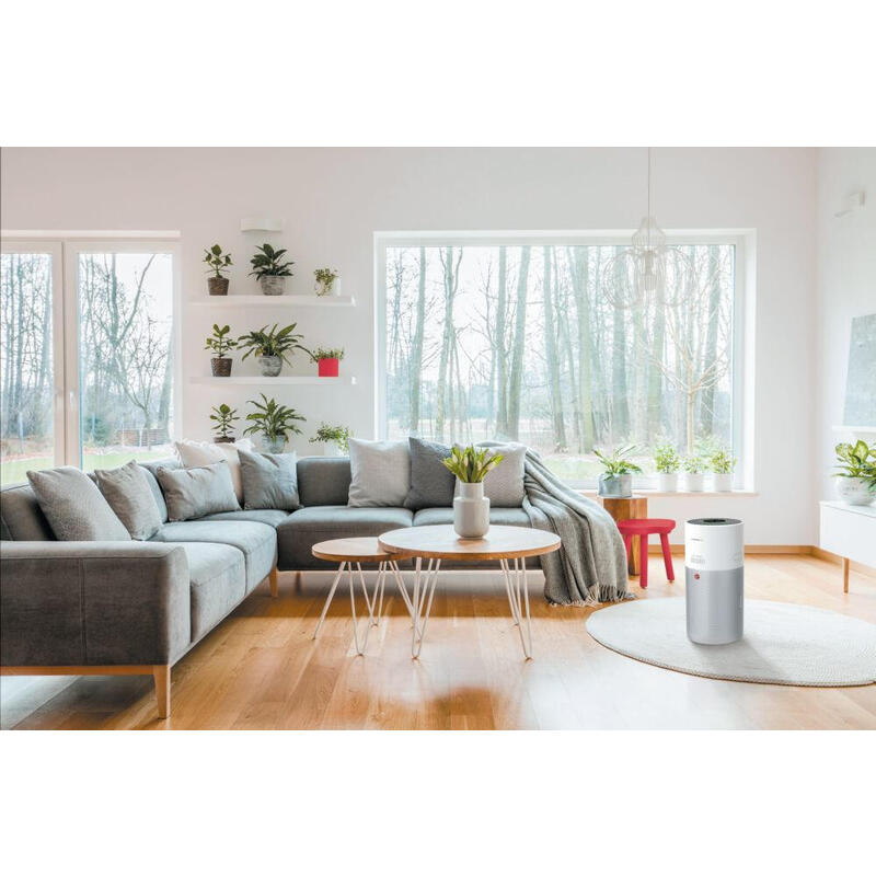 O HOOVER HHP50CA011 foi concebido para purificar o ar de divisões até 110 m², proporcionando um ambiente saudável e livre de alergénios.