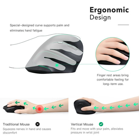 Rato Óptico Vertical Ergonômico Wireless 800/2400 DPI - Multi4you®