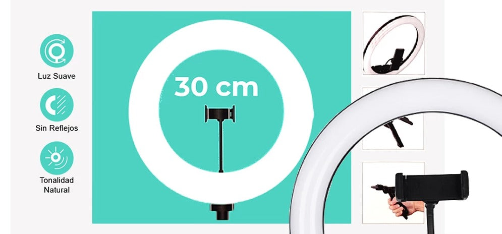Anel de Luz 3 Tons 30CM 12" Suporte para Celular com Suporte de Mesa + Controlador de Captura Bluetooth