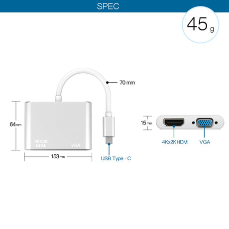 Adaptador Converter USB-C para HDMI + VGA 2k/4k - Multi4you®