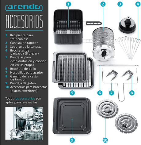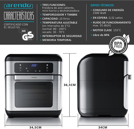 Arendo Multifuncional Air Fryer / Mini Forno / Desidratador 11L 1500W (OUTLET NOVA*)