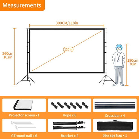 Ecrã de projeção 120″ 16: 9 com suporte desmontável - Portátil