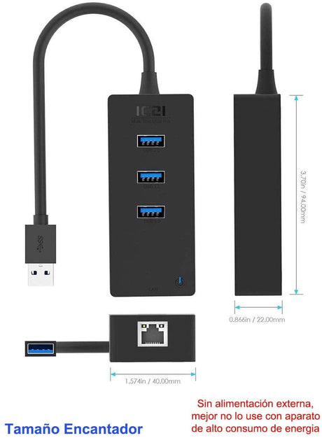 ICZI Adaptador USB 3.0 + HUB 3 Portas USB 3.0 para Ethernet / RJ45