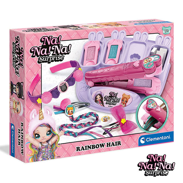 Na Na Na Surprise! Cabelos Arco-Íris da Clementoni – Uma placa de coloração exclusiva e tudo que você precisa para criar penteados da moda e mostrar todas as cores do arco-íris, no estilo Na Na Na completo!