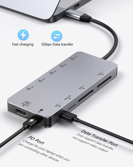 HUB Aluminium USB-C 11 em 1 HDMI 4K, USB 3.0, Carregamento,SDXC, Micro SD Card - Multi4you®