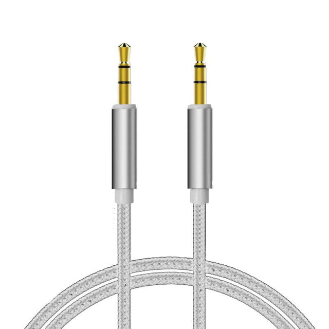 Cabo 3,5 mm a Jack 3,5 mm Áudio-Áudio Nylon Prata (1m)