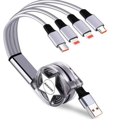 - ?POTENTE e duradouro: Carregador de telemóvel multicabo 4 em 1 com linha elétrica de extensão inquebrável de 1 M capa de TPE de alta qualidade estrutura de roda robusta que faz com que o cabo retrátil tenha uma excelente resistência à torção e ao desgaste sem emaranhamento