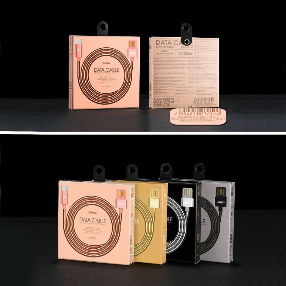 Cabo Remax Silver Serpent RC-080a USB - USB Tipo-C com trança metálica durável 2.1A 1M rosa