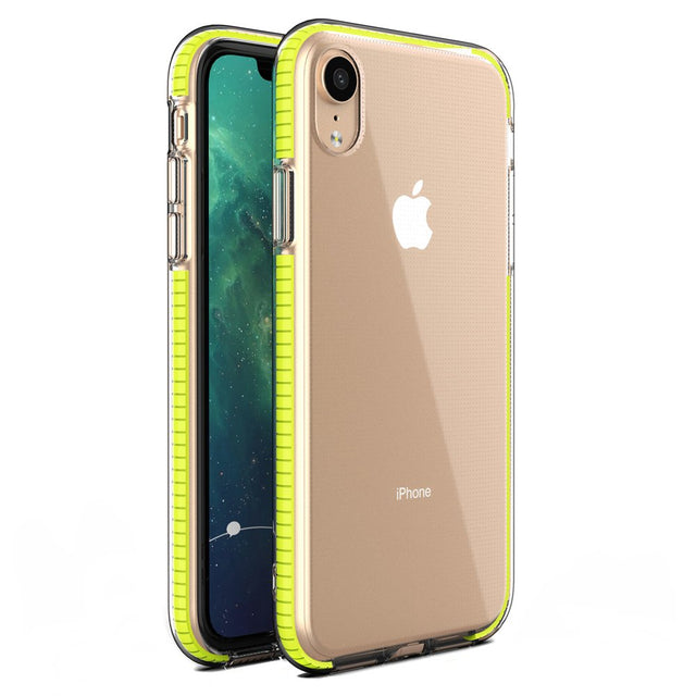 Capa protetora de gel TPU transparente com moldura colorida para iPhone XR amarelo