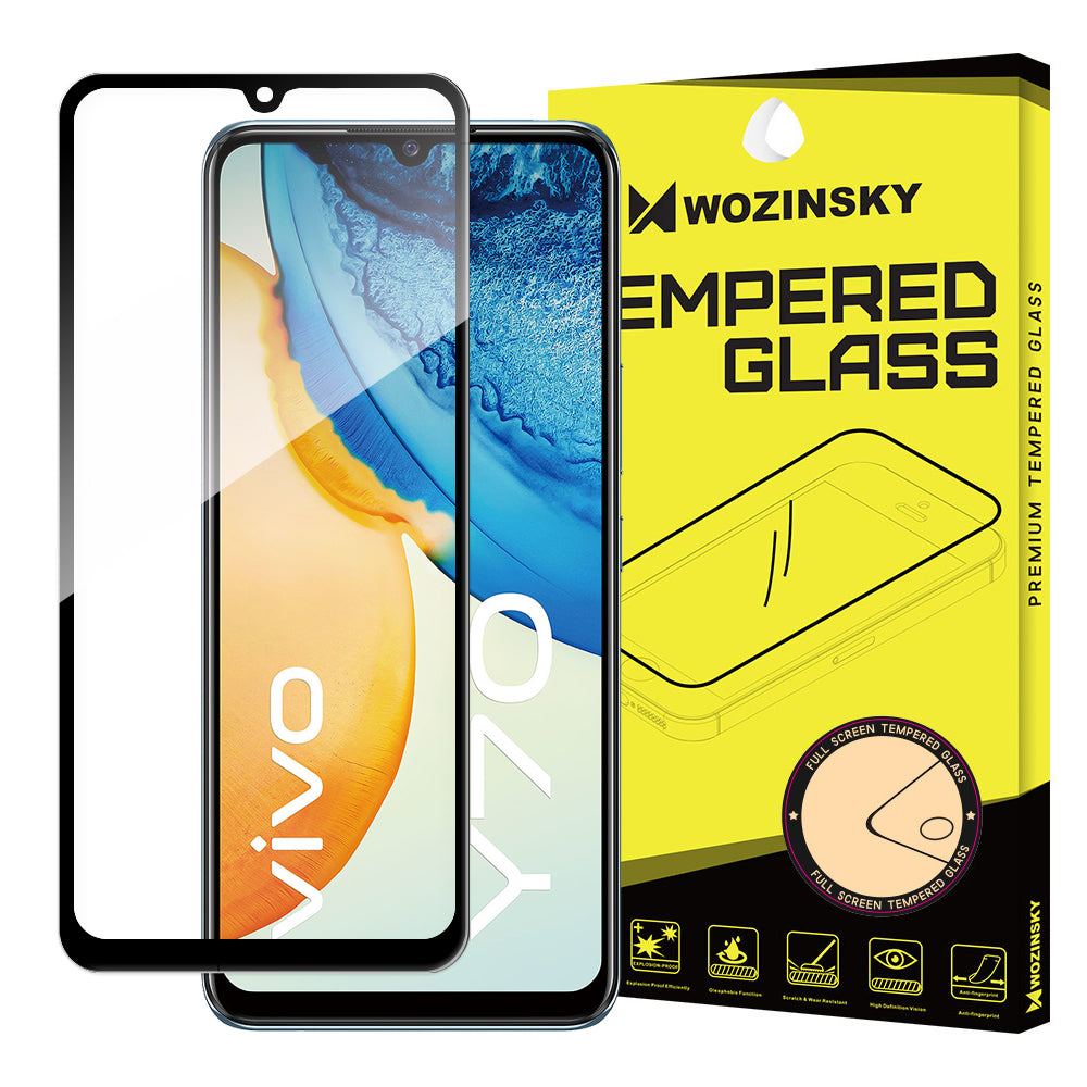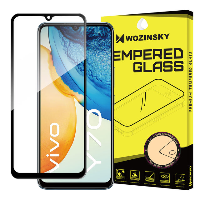 Protetor de tela super resistente de vidro temperado Wozinsky totalmente coberto com moldura compatível para Vivo Y70 preto