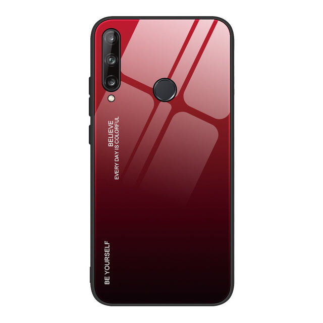 Tampa durável de vidro gradiente com parte traseira de vidro temperado Huawei P40 Lite E preto-vermelho