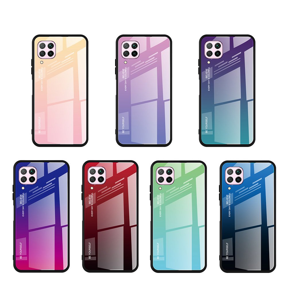 Tampa durável de vidro gradiente com parte traseira de vidro temperado Huawei P40 Lite - Nova 7i - Nova 6 SE verde-roxo