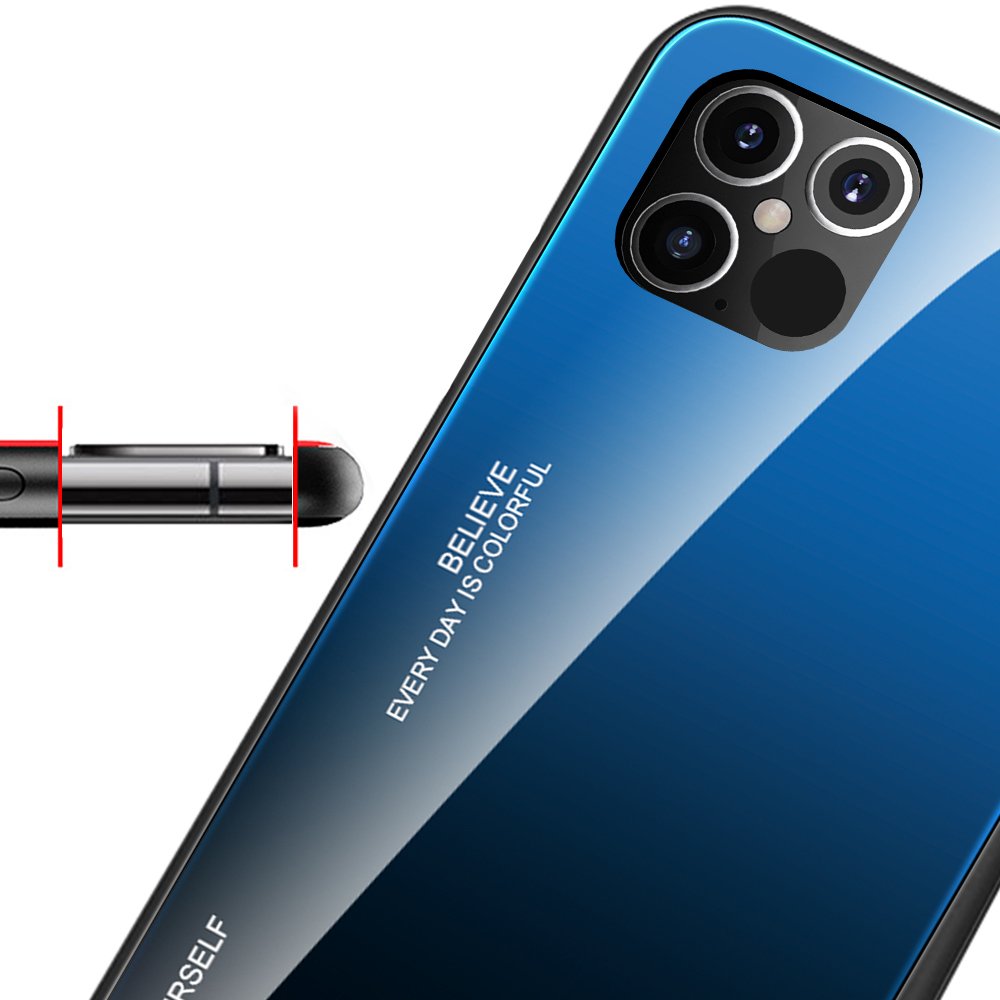 Tampa durável de vidro gradiente com parte traseira de vidro temperado iPhone 12 Pro Max verde-roxo